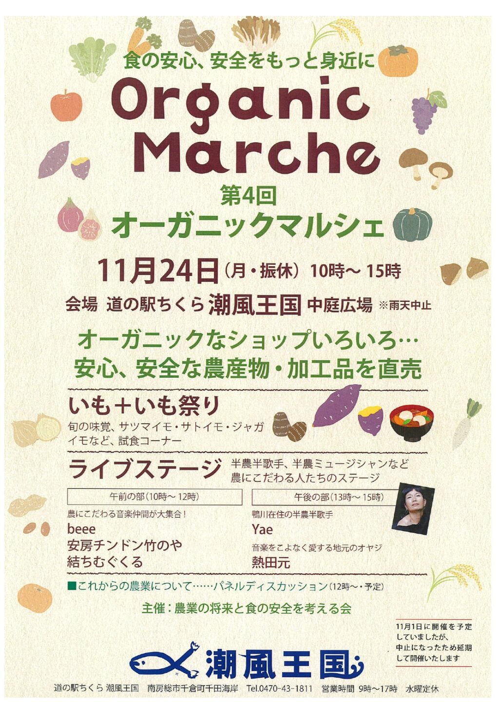 11月1日に予定していたオーガニックマルシェが天候不順のため中止となりましたが、11月24日に開催することとなりました。